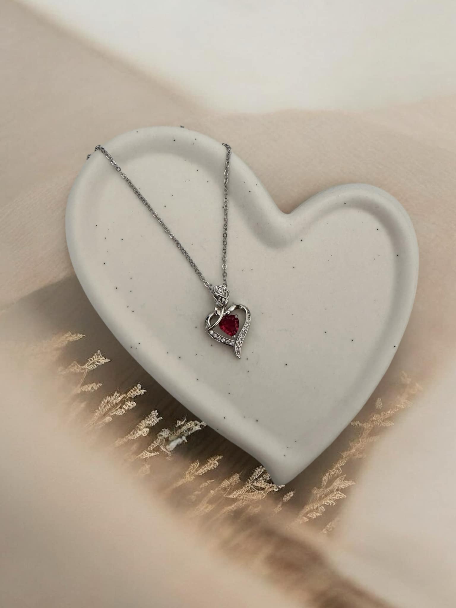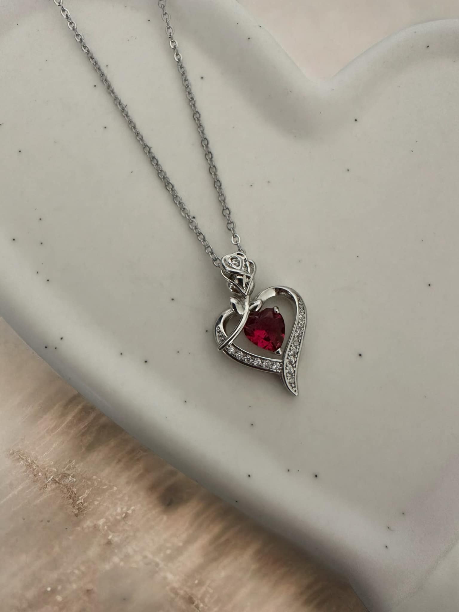 Un collier romantique et symbolique, orné d’un cœur argenté et d’une pierre rouge éclatante. Une création artisanale signée La beauté en un clic.