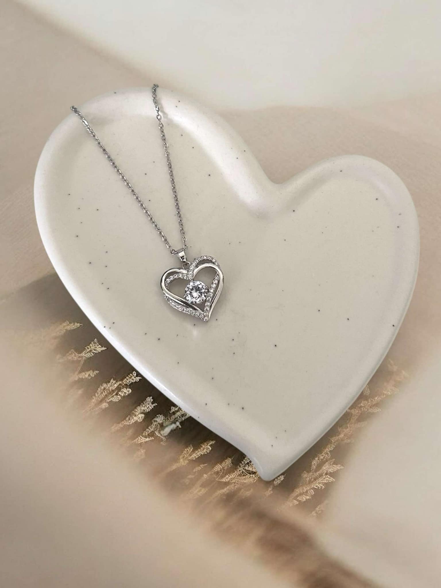 Un collier raffiné et élégant, orné d’un pendentif en forme de double cœur incrusté de strass scintillants, chaine non réglable de 22 cm, avec une pierre centrale délicate. Fabriqué en acier inoxydable argenté pour une brillance durable et sans ternissement.