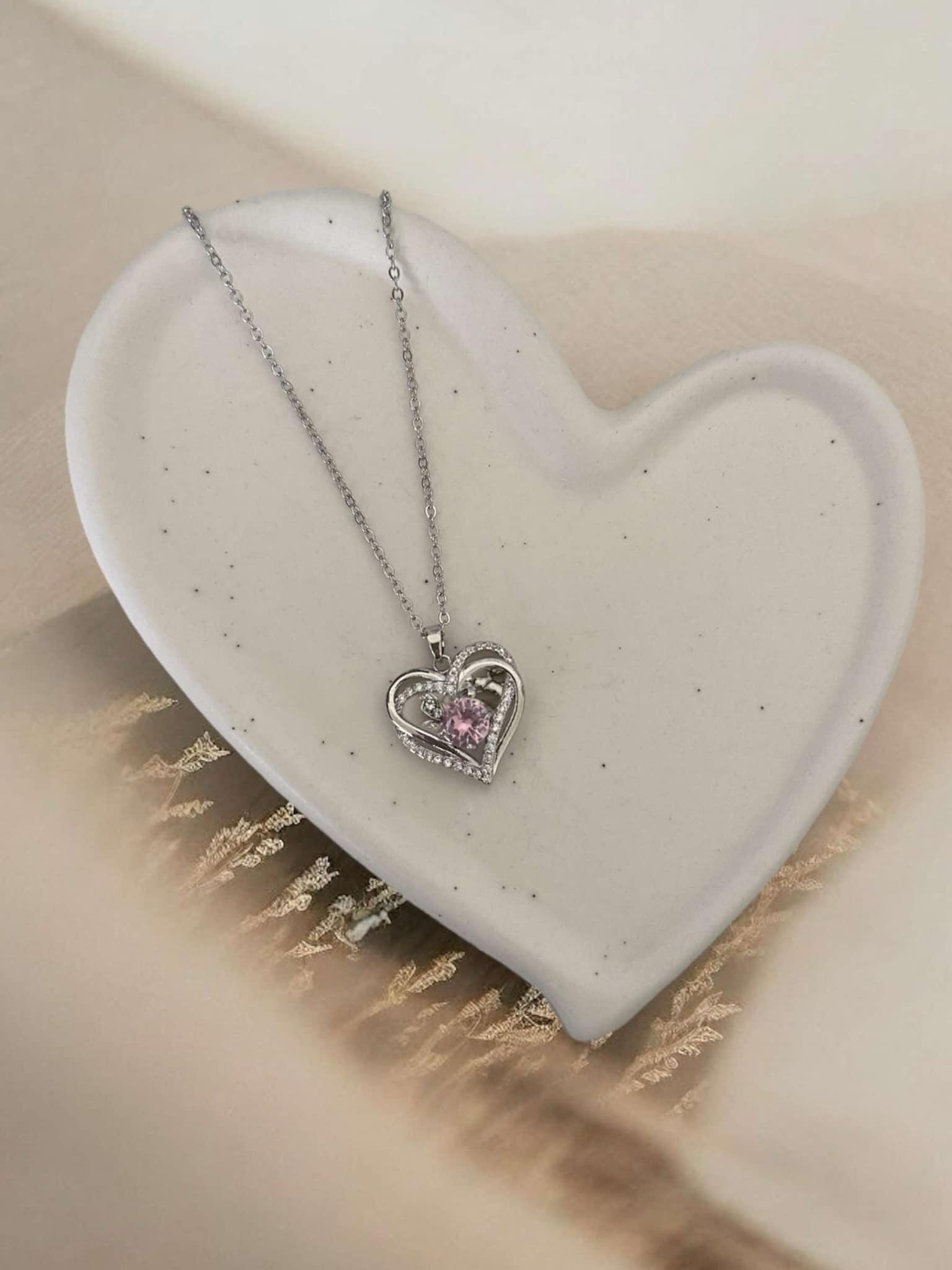 Ajoute une touche de romantisme et de sophistication à ton look avec ce magnifique collier en acier inoxydable. Sa chaîne argentée, fine et résistante, met en valeur un pendentif double cœur élégant, incrusté de strass brillants pour un effet lumineux garanti. En son centre, une pierre rose sertie apporte une touche précieuse et féminine.