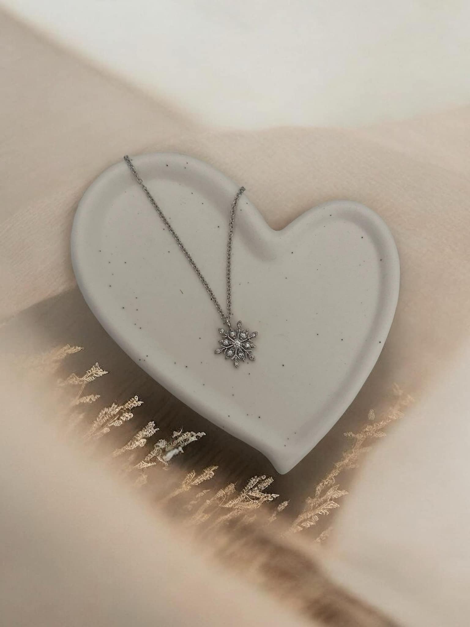 Collier délicat orné d’un pendentif flocon argenté, idéal pour une touche hivernale chic. Une création élégante signée La beauté en un clic.