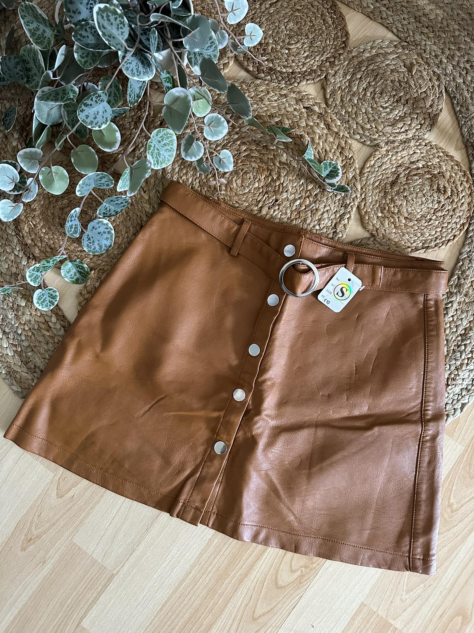 Apporte une touche de caractère à ton look avec cette jupe courte en simili cuir camel. Sa matière effet cuir lisse et douce offre une allure à la fois audacieuse et féminine, parfaite pour les journées ensoleillées comme pour les looks automnaux.