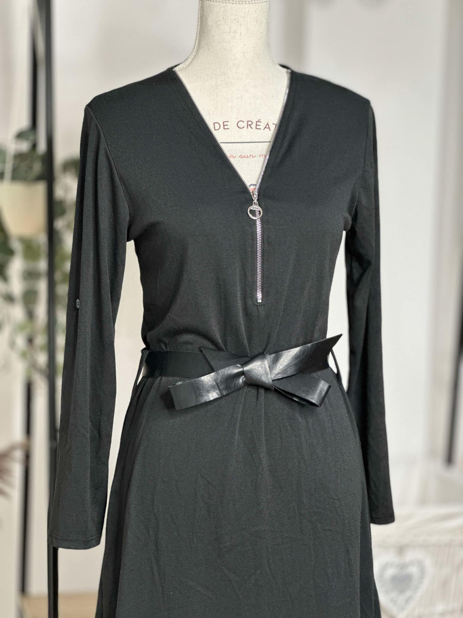 Craque pour cette robe noire à la fois sobre et moderne, parfaite pour toutes les occasions. Sa fermeture zippée à l’avant ajoute une touche tendance et permet de moduler le décolleté selon vos envies.